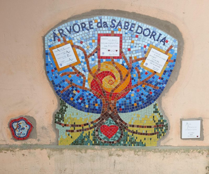 O mosaico pronto foi colocado no muro externo da escola municipal Marcos Trench para que possa ser visto por todos