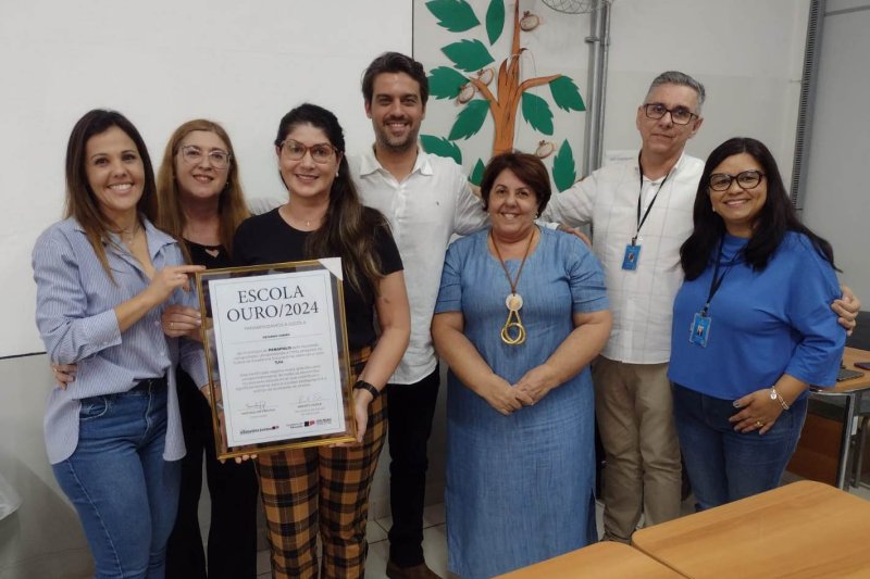 A placa “Escola Ouro 2024” foi enviada pela Secretaria Estadual de Educação às escolas que conquistaram o Prêmio Excelência Educacional