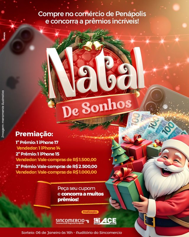 O clima natalino começa a tomar conta do comércio penapolense com o lançamento oficial da tradicional campanha “Natal dos Sonhos”, promovida pelo Sincomércio (Sindicato do Comércio Varejista) em parceria com a ACE (Associação Comercial e Empresarial) de Penápolis. Esta é a última ação do calendário anual de promoções, voltada ao fortalecimento do comércio local, a qual foi apresentada em coletiva de imprensa, com grande expectativa de movimentar as vendas neste fim de ano. O presidente do Sincomércio, Júlio Galinari, destacou que é a campanha mais [...]
