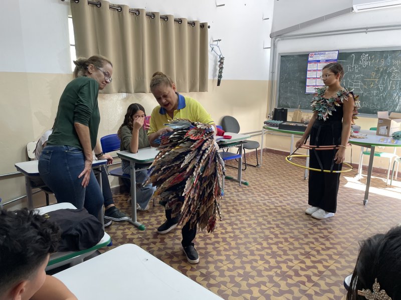 A oficina foi conduzida voluntariamente pela arte-educadora Rosemary Pimentel de Souza Takano, do Lions Clube, que orientou os estudantes ao longo das etapas de criação. A experiência uniu educação ambiental, arte e protagonismo juvenil, resultando em um trabalho coletivo marcado por inovação e consciência ecológica. Ao final das atividades, todos os participantes receberam certificado de participação entregue pelo Daep.